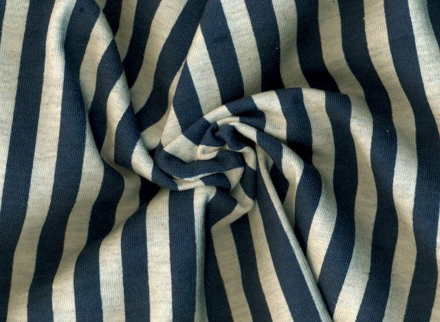 Modischer Baumwolljersey Druck Streifen in blau-beige-melange oder braun-beige-melange