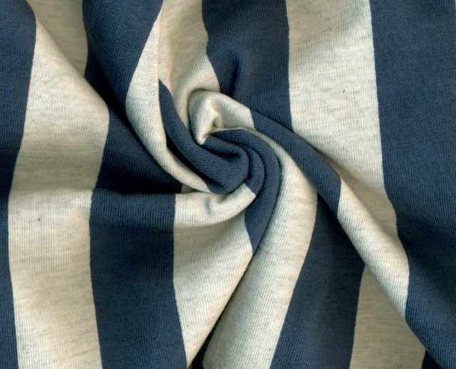 Modischer Baumwolljersey Druck Streifen in marine-beige-melange