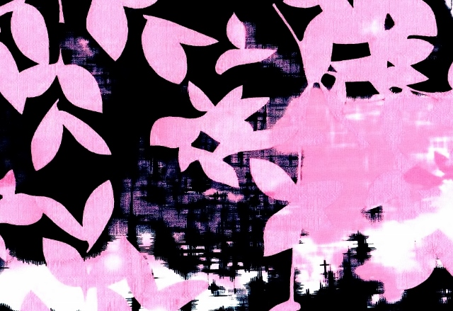 Modischer, schwerer, fließender Jersey mit Druck Blätter in rosé-marine-weiß.