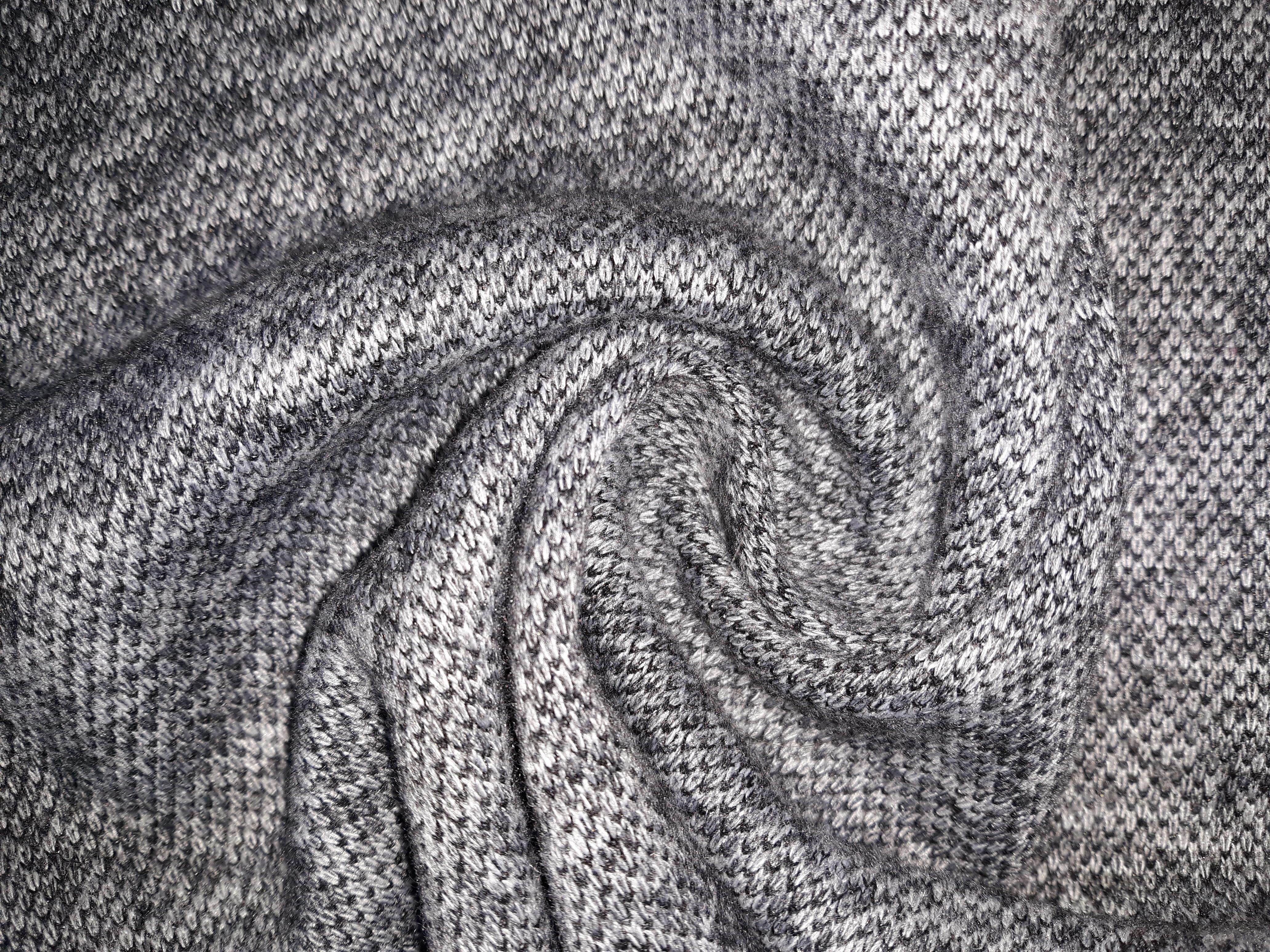 Kuscheliger, elastischer Strick mit weichem Griff und sehr trageangenehm mit leicht gerauter, flanellartiger Oberfläche in grau-melange.Geeignet für Pullover, Jacken, Westen, Röcke, Kleider und Deko.