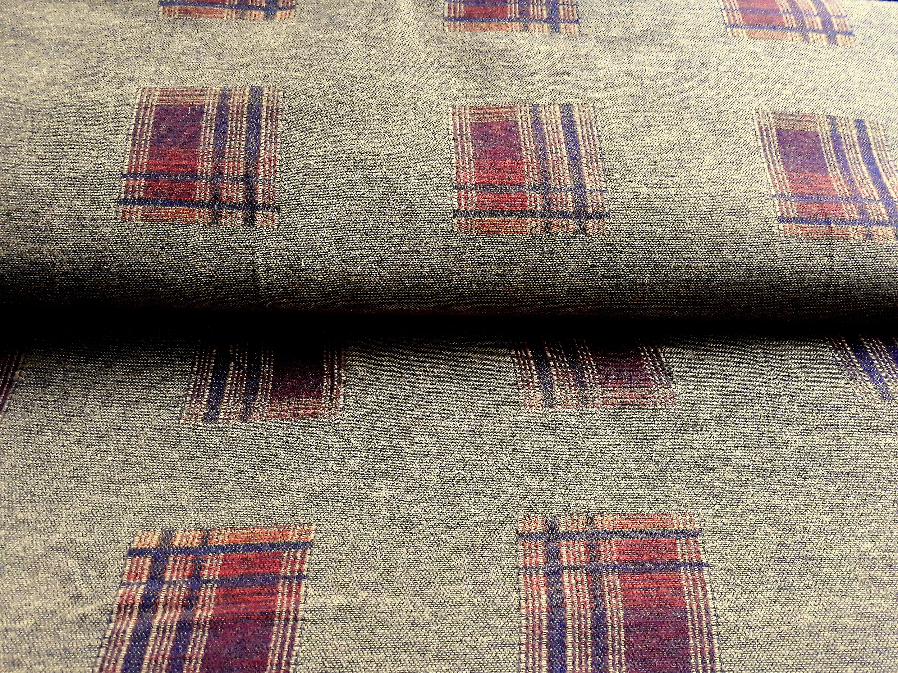 Viskose-Baumwollmischung in braun mit eingewebtem Karo bordeaux