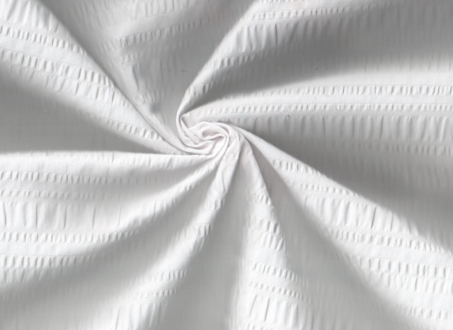 Luftig leichter, gesmokter Blusenstoff mit schönem Fall. Der pflegeleichte, bügelfreie Stoff eignet sich hervorragend für Sommerbekleidung wie Blusen, Tops, Tuniken und Kleider sowie für Brautmode, Kommunion, Konfirmation und Taufkleider.