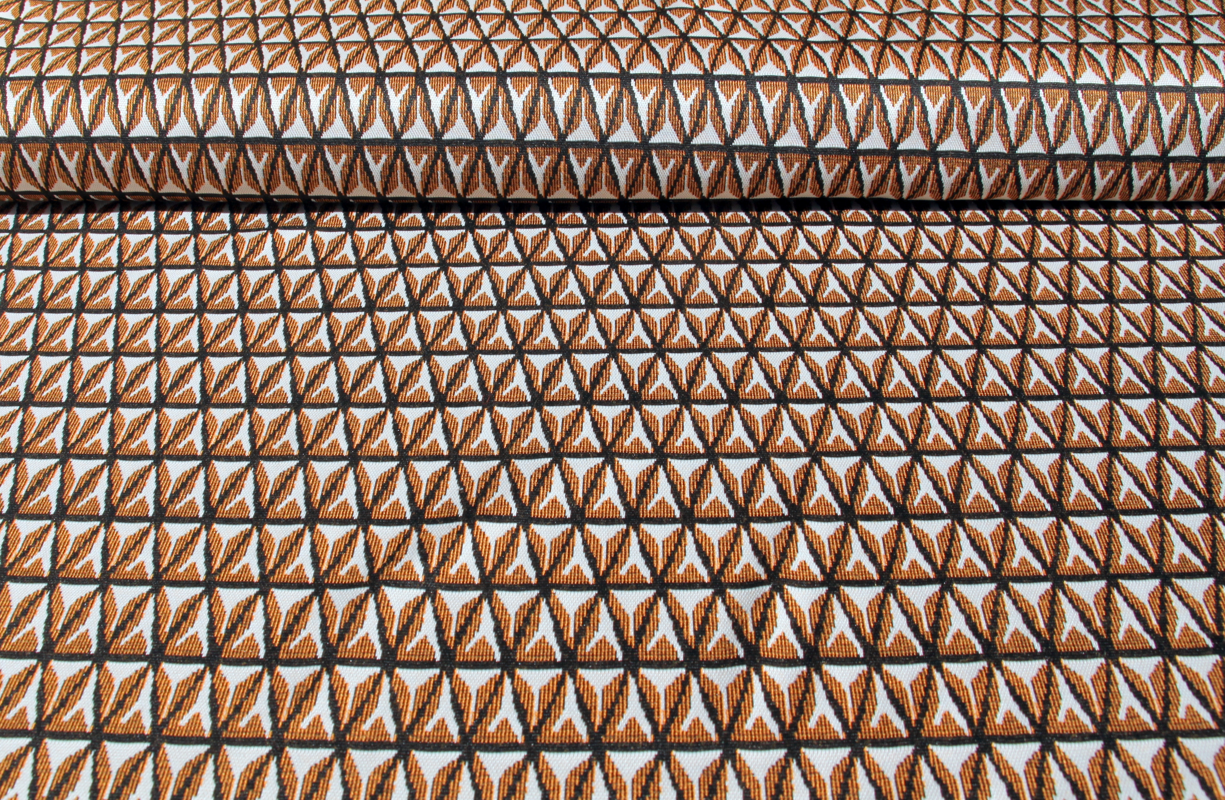 Modischer Jacquard-Jersey Viskose-Mix grün-ecru oder cognac-ecru