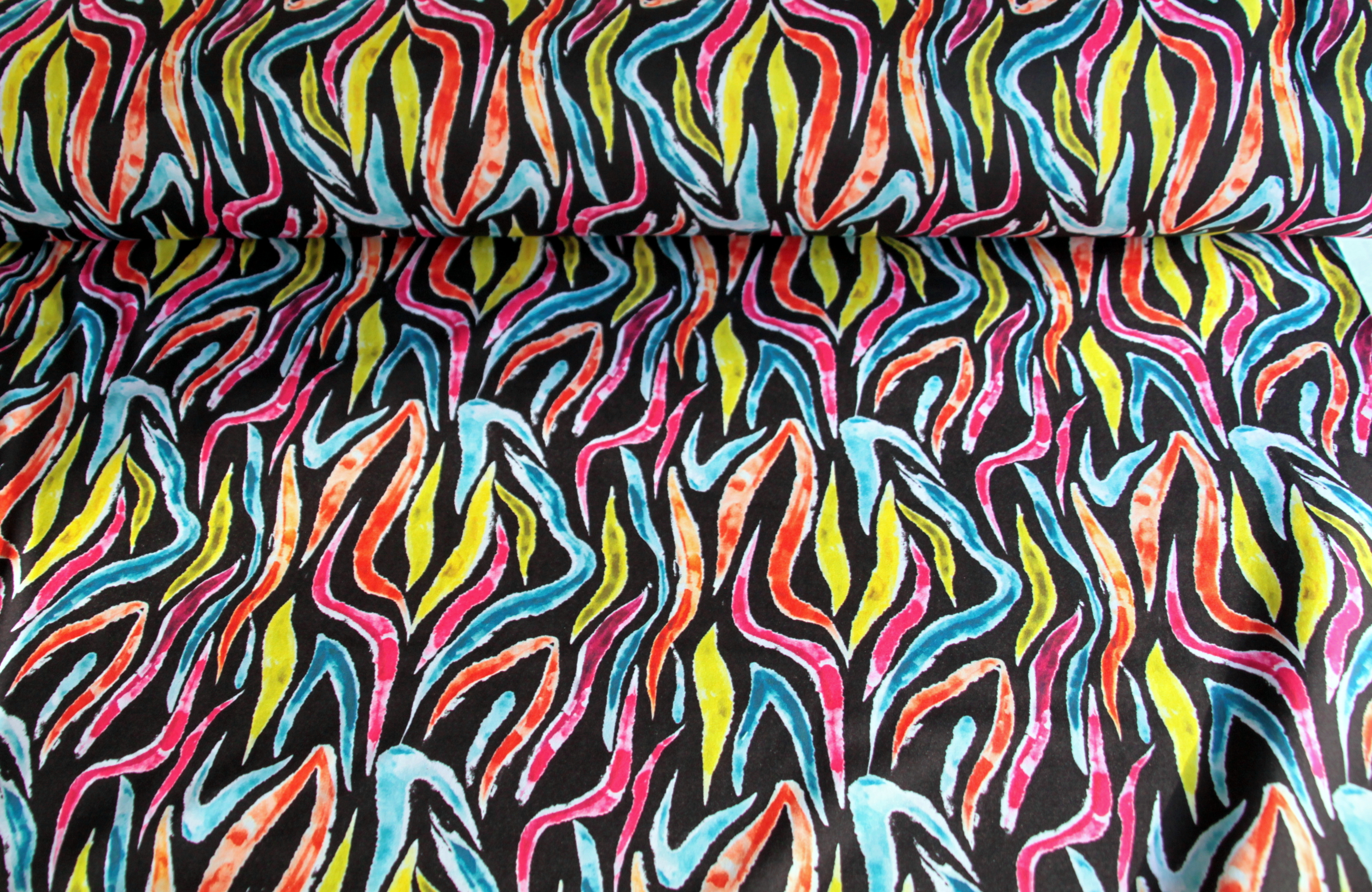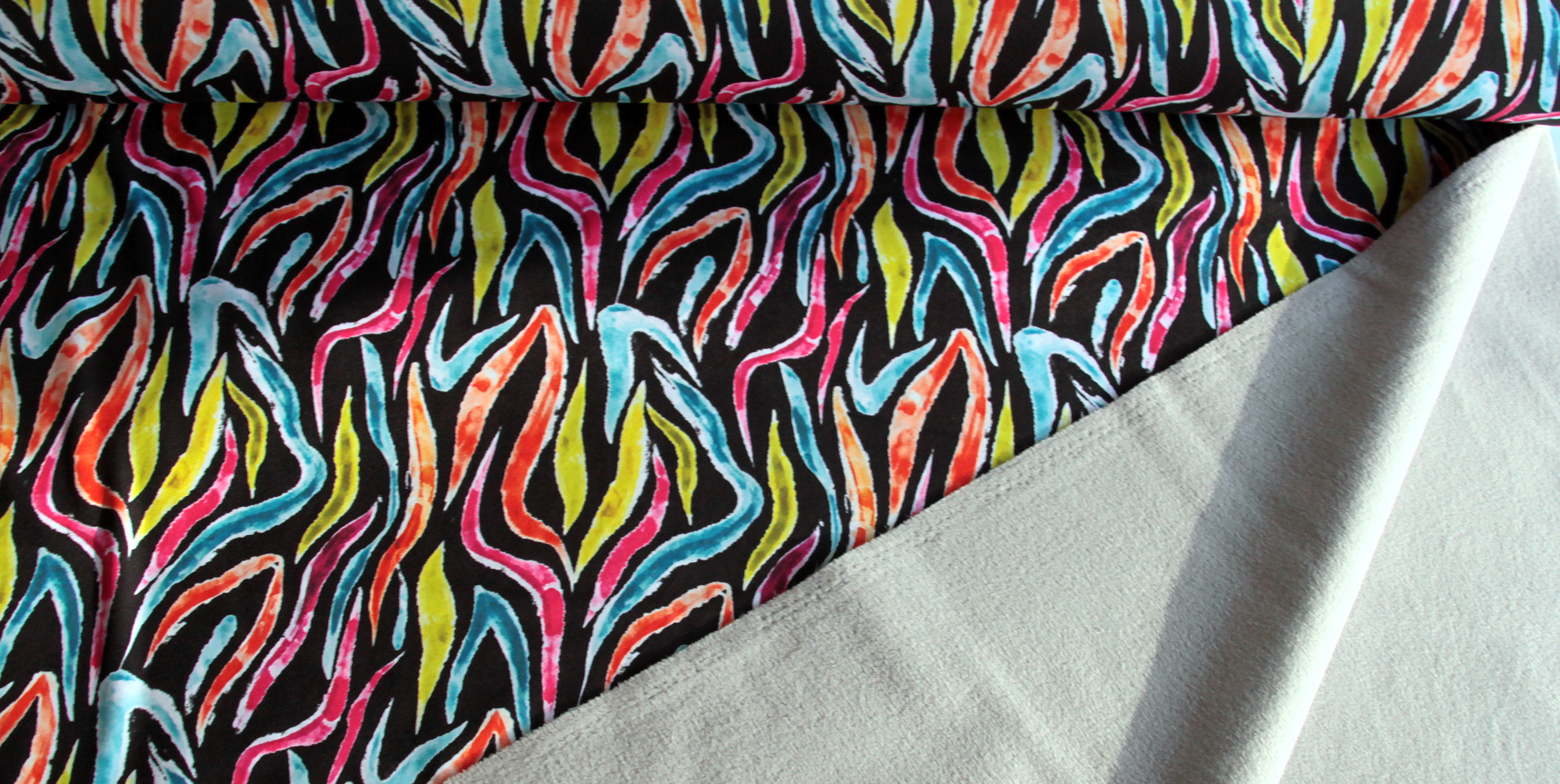 Atmungsaktiver Softshell Stoff mit Druck bunte Wellen auf schwarzem Grund und Fleecerückseite in hellgrau. Die glatte Außenseite ist winddicht, wasser- und schmutzabweisend , die Innenseite kuschelig weich. Der isolierende, atmungsaktive und strapazierfähige Stoff eignet sich besonders für Outdoor-Bekleidung für groß und klein wie Jacken, Westen, Hosen, Overalls. Aber auch für Taschen, Rucksäcke und andere nützliche Accessoires ist er gut geeignet.